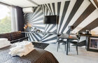 The venue is suitable for groups of up to 15 people and features five spacious bedrooms with luxurious box-spring beds and private bathrooms. You'll also find a large kitchen, dining room, bar, lounge, and a separate room with a projector – perfect for presentations or team-building sessions.