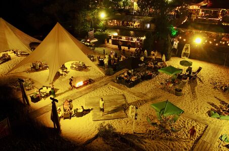 Our venue features five distinct spaces , including a 1,500 m² private beach , capable of accommodating up to 1,500 people for a cocktail reception or 600 guests for a seated meal . Thanks to our modular reception tents , we guarantee comfort and flexibility, whatever the weather.