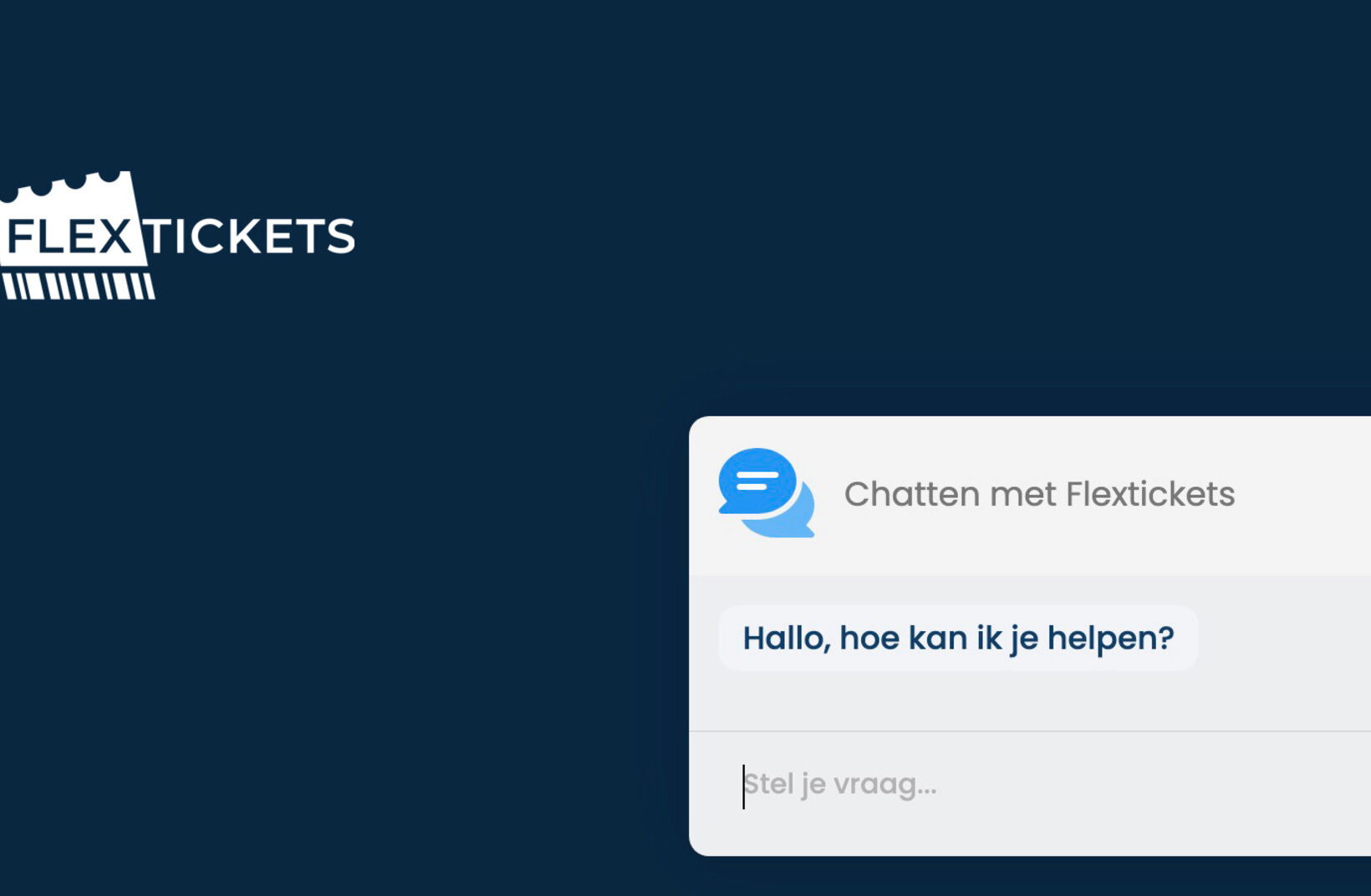 A new AI Chat is available on Flextickets.nl. It's active 24/7 and provides immediate answers to frequently asked questions about tickets, events, and using Flextickets. No waiting time and no emails.
